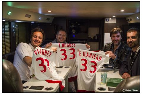 Julien Doré a également joué le jeu. Le chanteur a posé avec son maillot en compagnie de Maxime Poundjé, venu prendre la pose pour l'occasion.